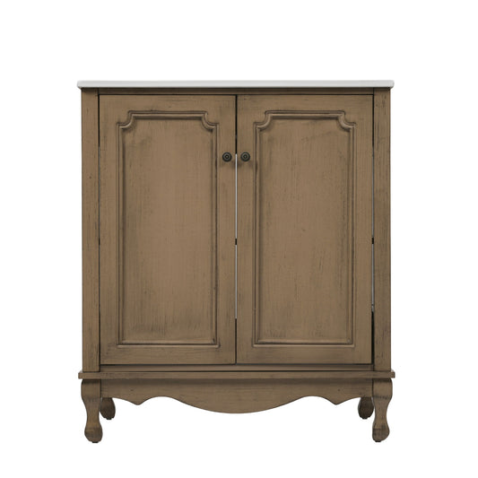 Vintage Bathroom Vanity With Ceramic Sink, Adjustable Shelves