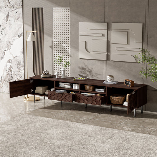 TV Stand For 75" TVs With Drawer, 1 Drawer And 2 Sliding-Door Cabinets - Dark Brown