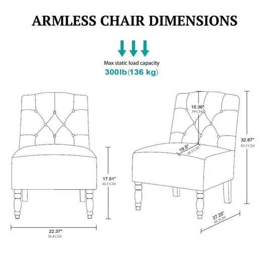Vintage Tufted Armless Chair With Button Tufting - Taupe