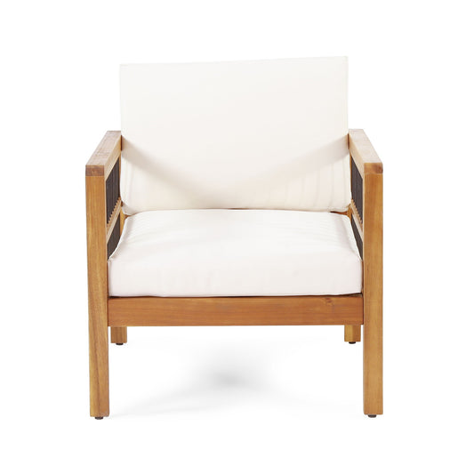 4 Piece Outdoor Chat Set With Water Resistant Cushion And Wood Frame - Cream / Gray