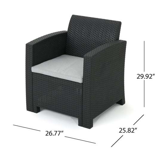 Zephyra - Outdoor 4 Piece Faux Wicker Rattan Chat Set With Water Resistant Cushions - Gray
