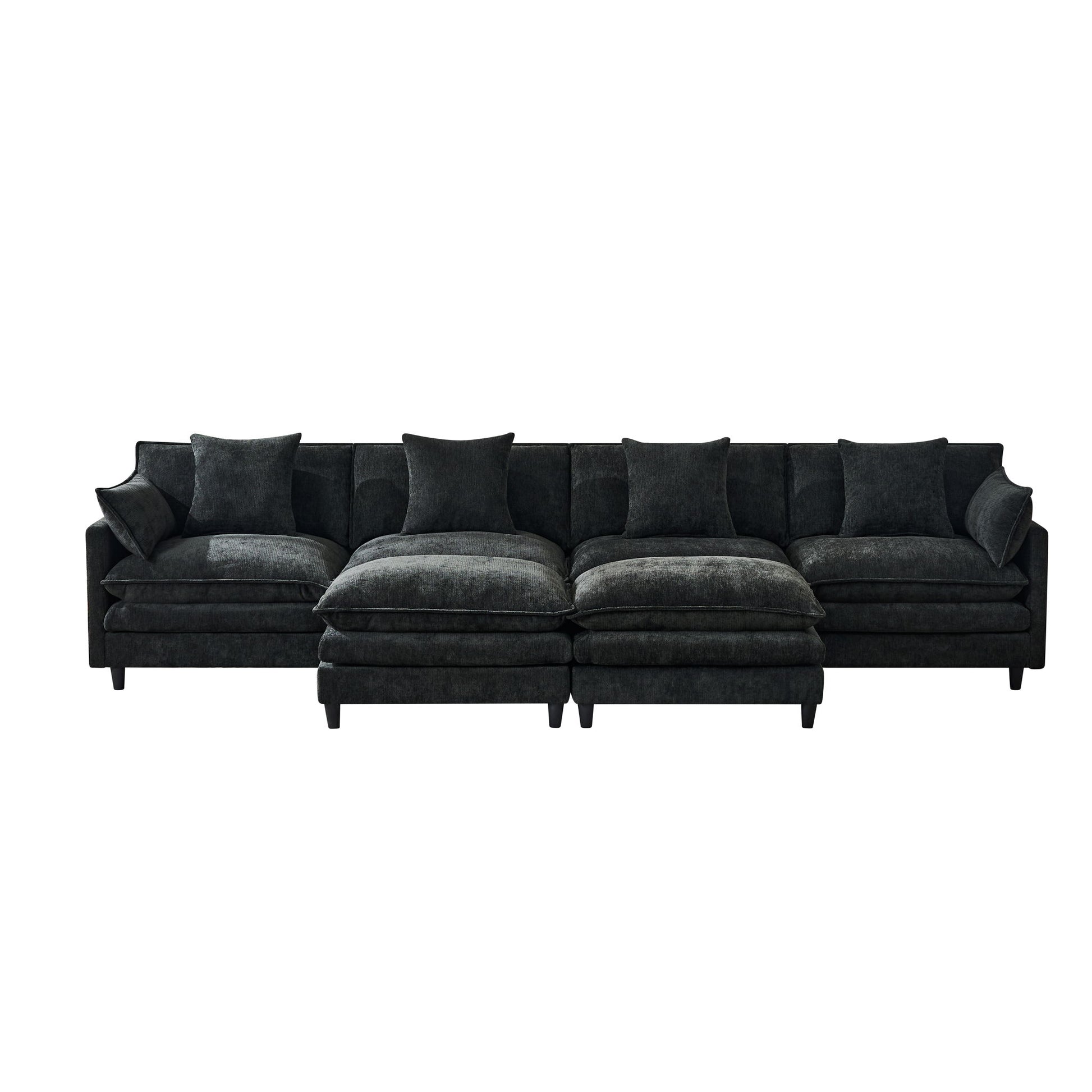 U-Shaped Modular Sectional Sofa With 2 Movable Ottomans, 4 Cushions And 2 Throw Pillows - Black