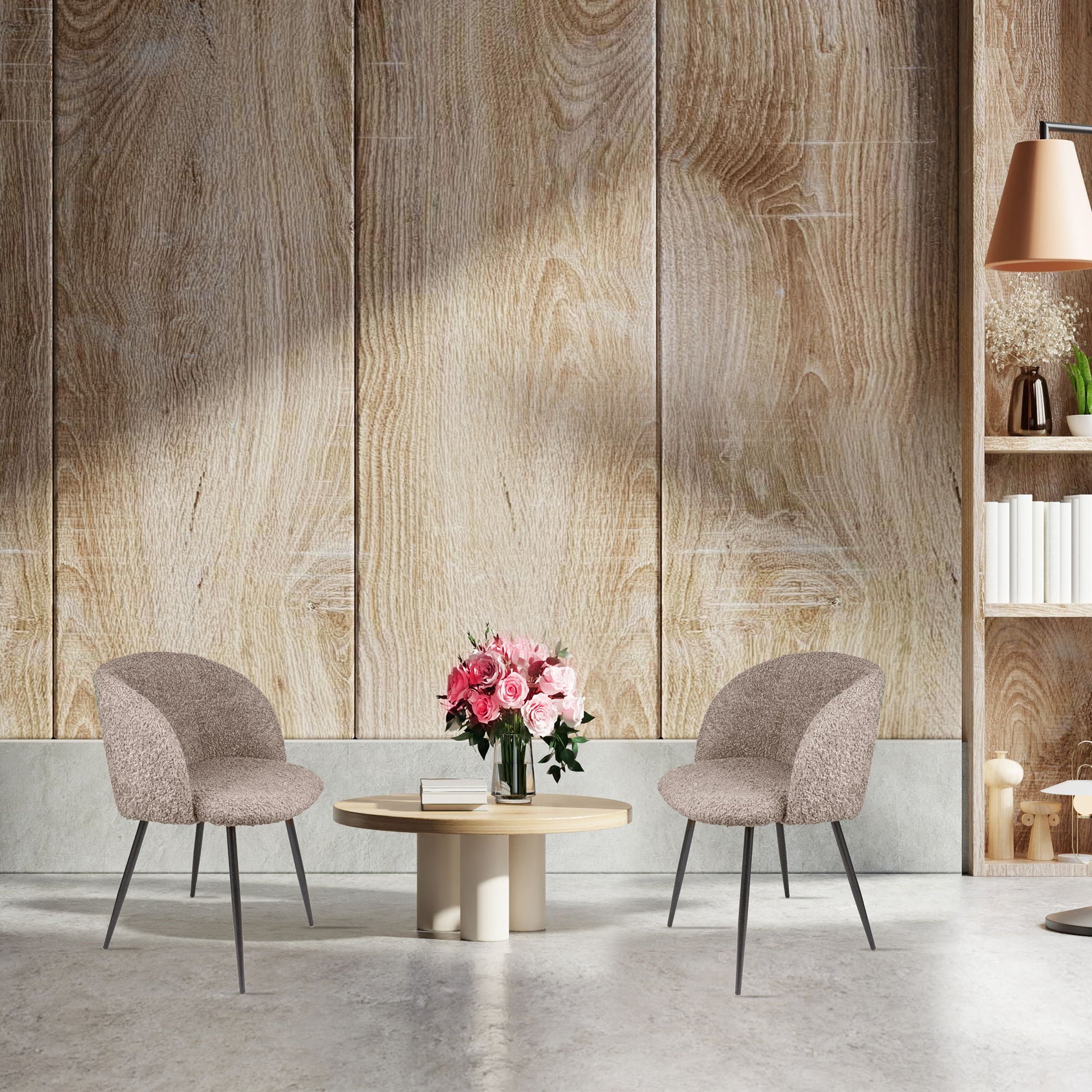 Adjust Legs Upholstered Teddy Faux Fur Dining Armrest Chair (Set of 2) - Light Brown