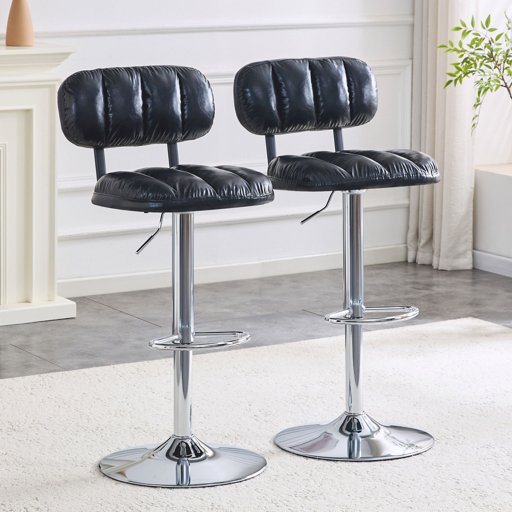 Adjustable Height Bar Stools With Footrest For Kitchen Island (Set of 2) - Black / Silver