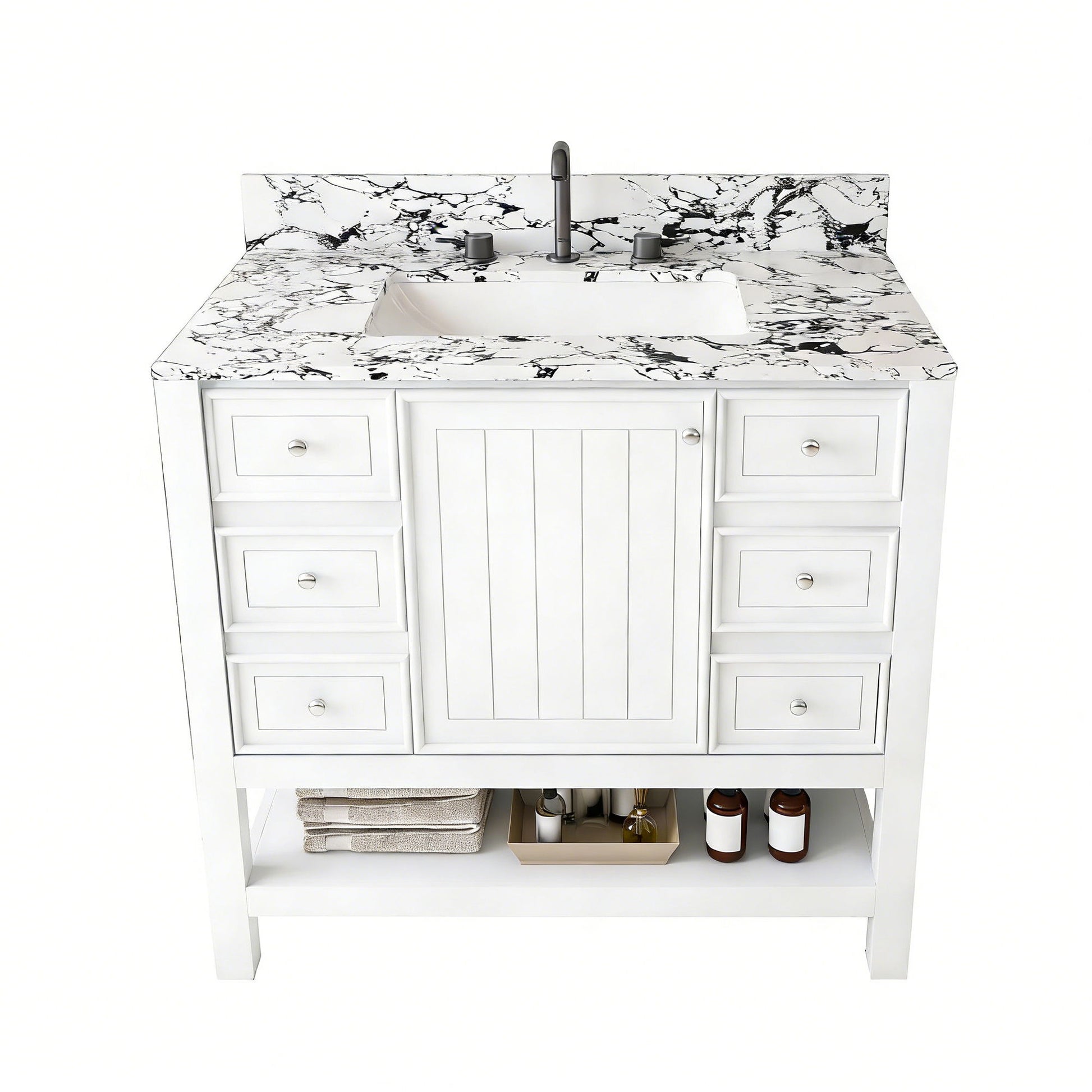 - Easy Sink Integration: Pre-drilled faucet holes support standard 37x22-inch ceramic sinks for hassle-free setup