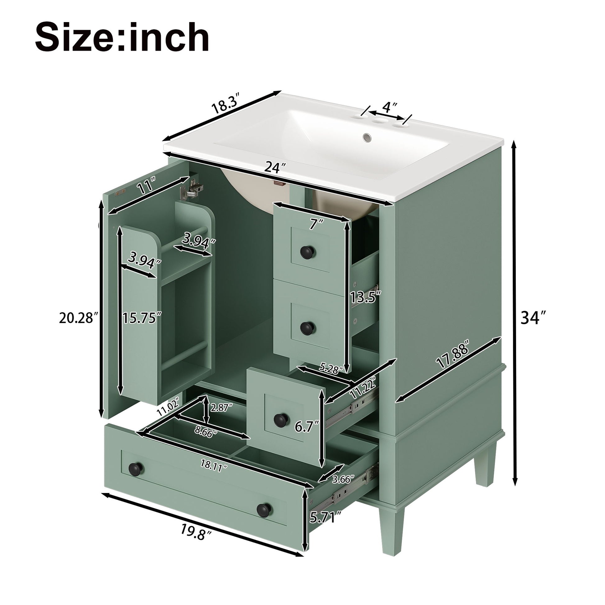 Bathroom Vanity With Sink, Soft Close Drawers, Double Layer Door Shelf - Light Green