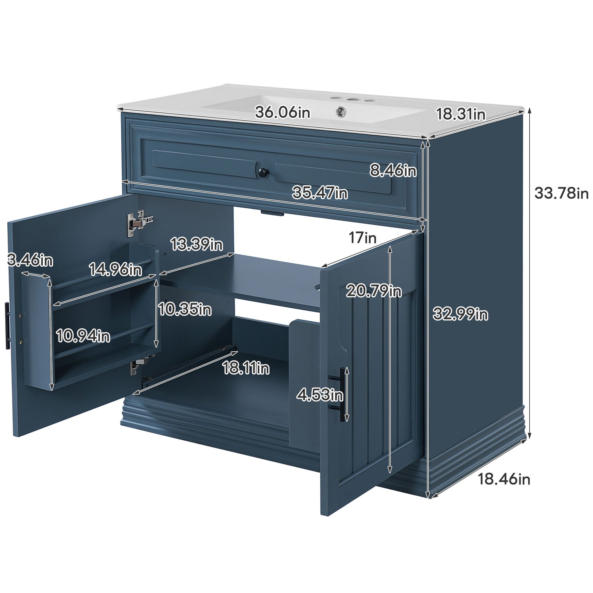 36" Bathroom Vanity With Sink, Cabinet With 2 Soft Closing Doors - Blue