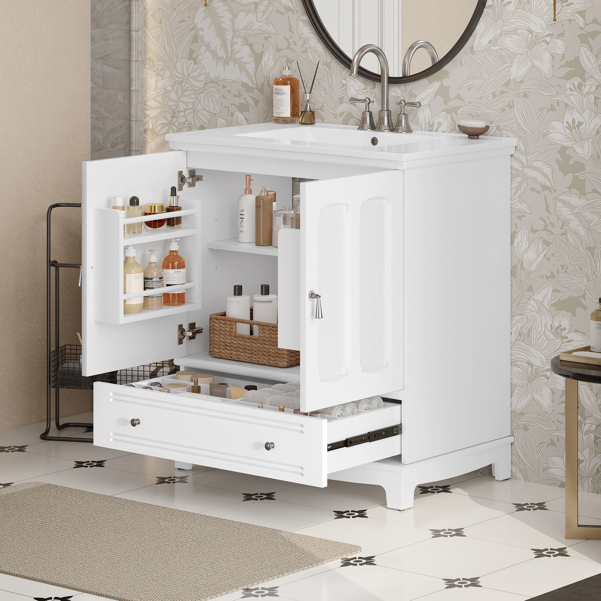 Bathroom Vanity With Sink, Cabinet With Adjustable Shelf, Drawer Divider - White