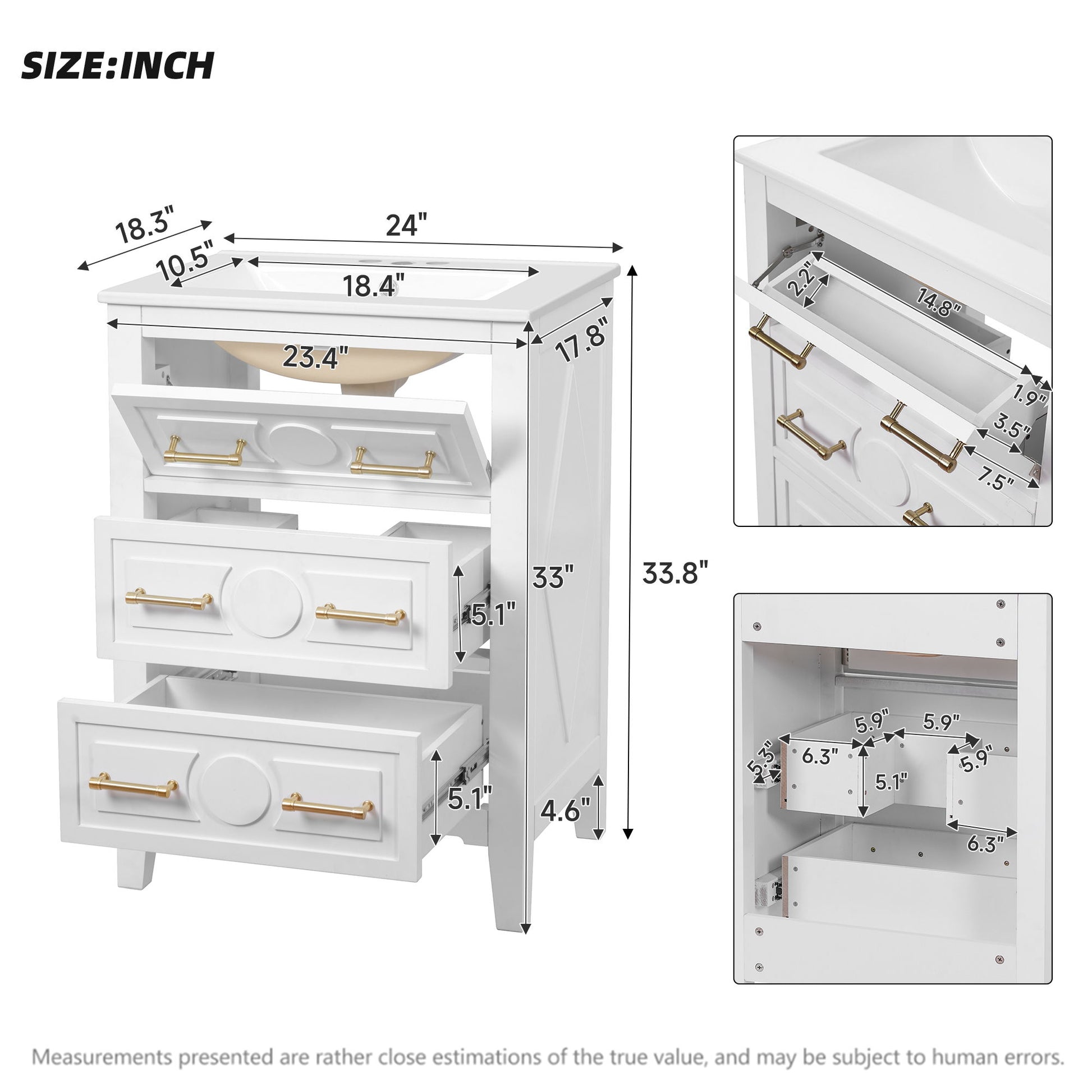 Bathroom Vanity With Sink, Free Standing Single Set, 3 Drawer Storage Cabinet - White