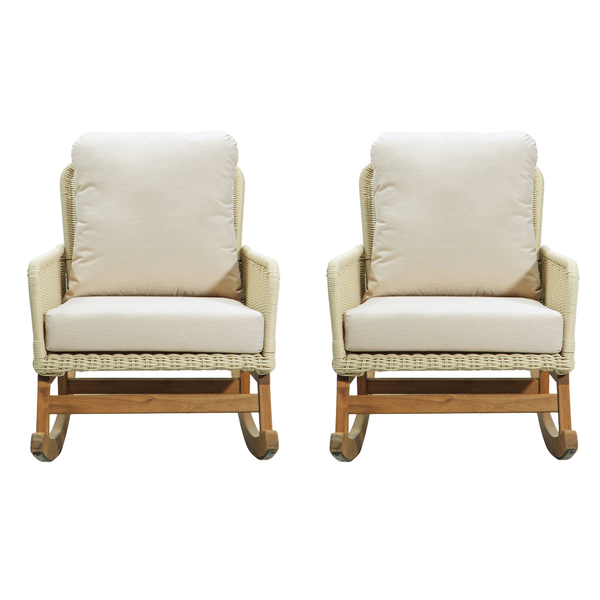 Contemporary Minimalist Wicker Rocking Chair Set With Soft Polyester Cushions And Durable Wooden Frame For Indoor And Outdoor Spaces - Ivory
