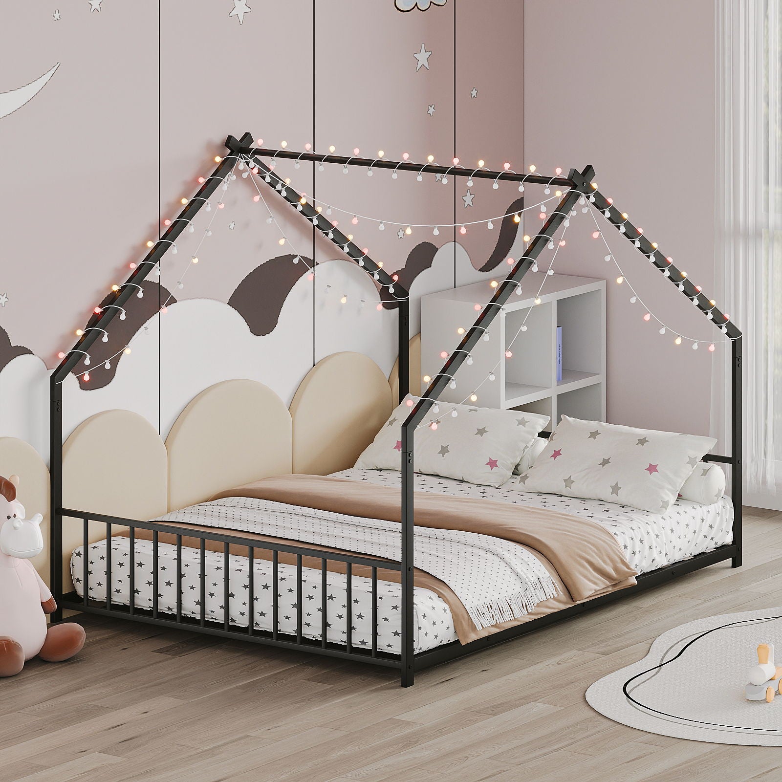 - Rooftop Design: Unique roof-shaped iron frame adds charm and playfulness to any child's room.
