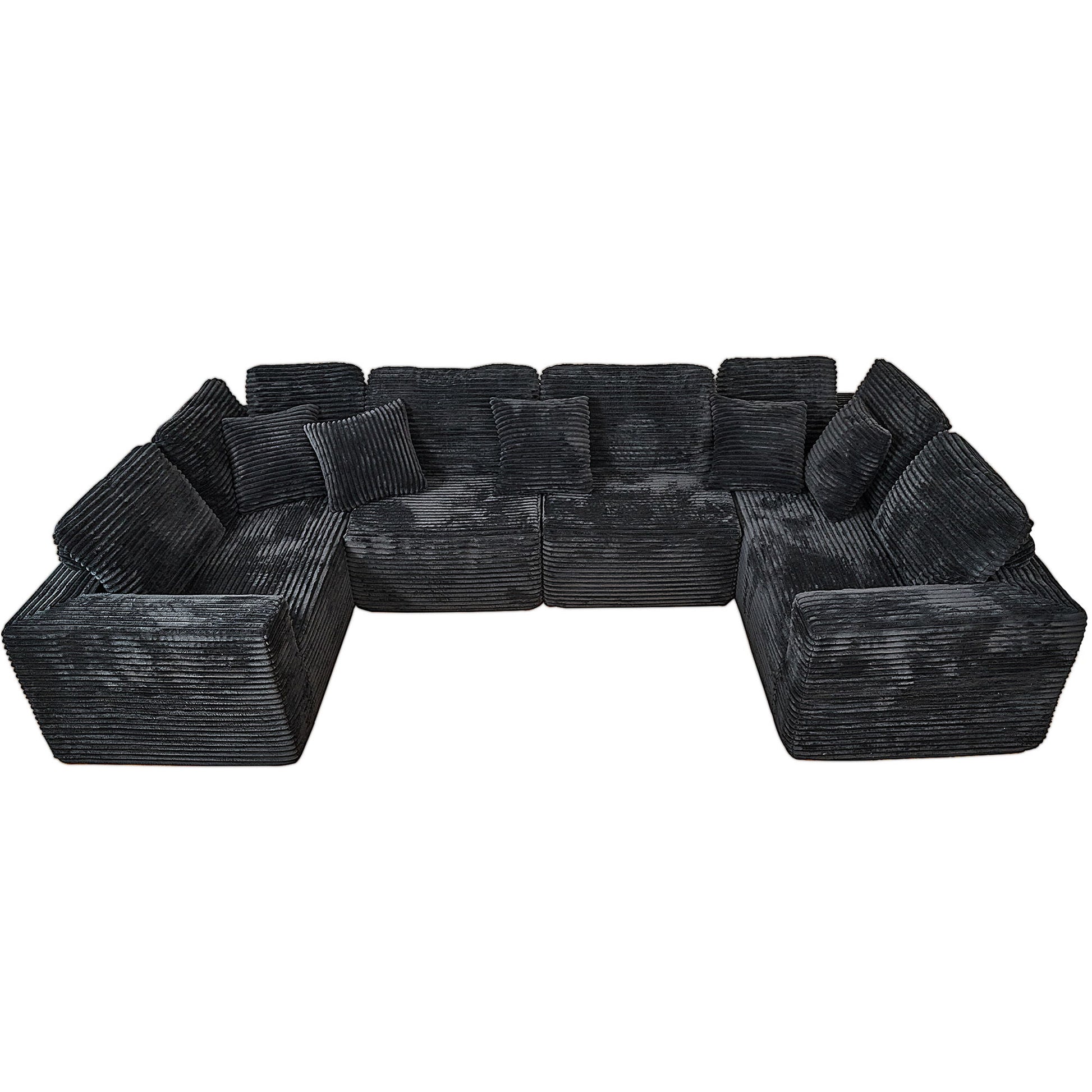Modular U-Shaped Sectional Sofa, 6 Seater Chaise Lounge With Reversible Design - Black