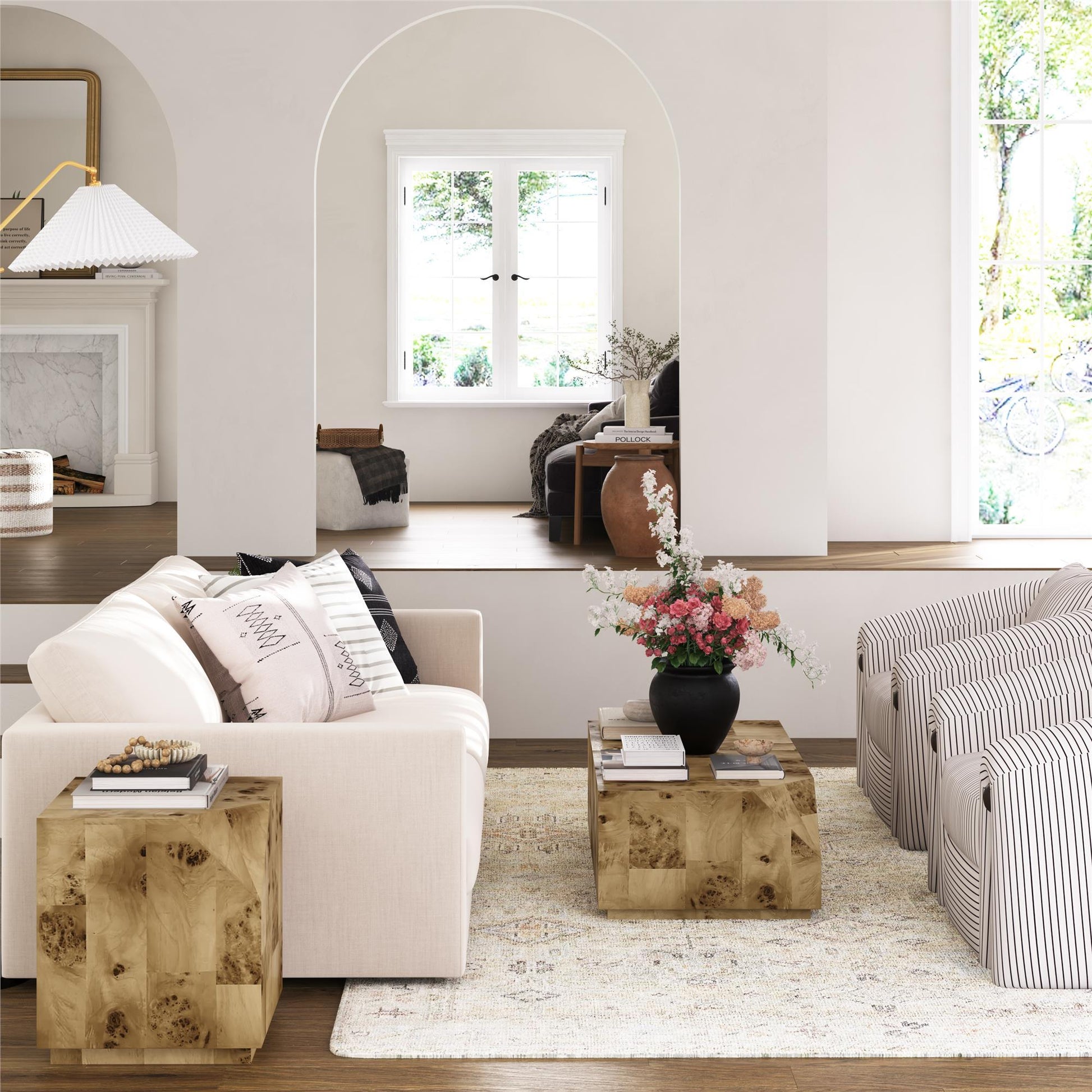 - Sleek Design with Burl Finish: Features a luxurious burl finish veneer on all pieces, delivering a high-end aesthetic with natural wood variation