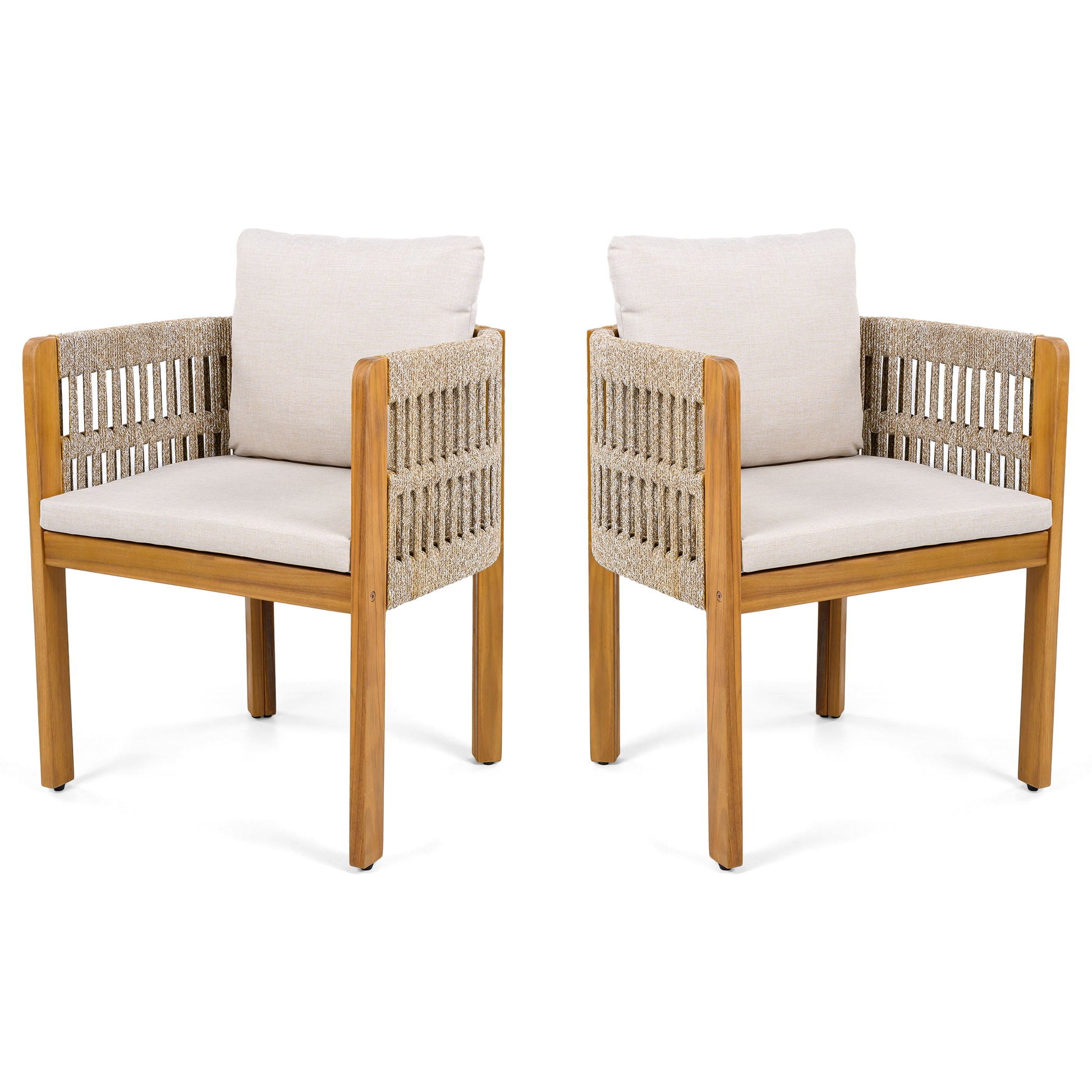 Outdoor Dining Chairs With Rope Handles (Set of 2) - Beige / Teak / White