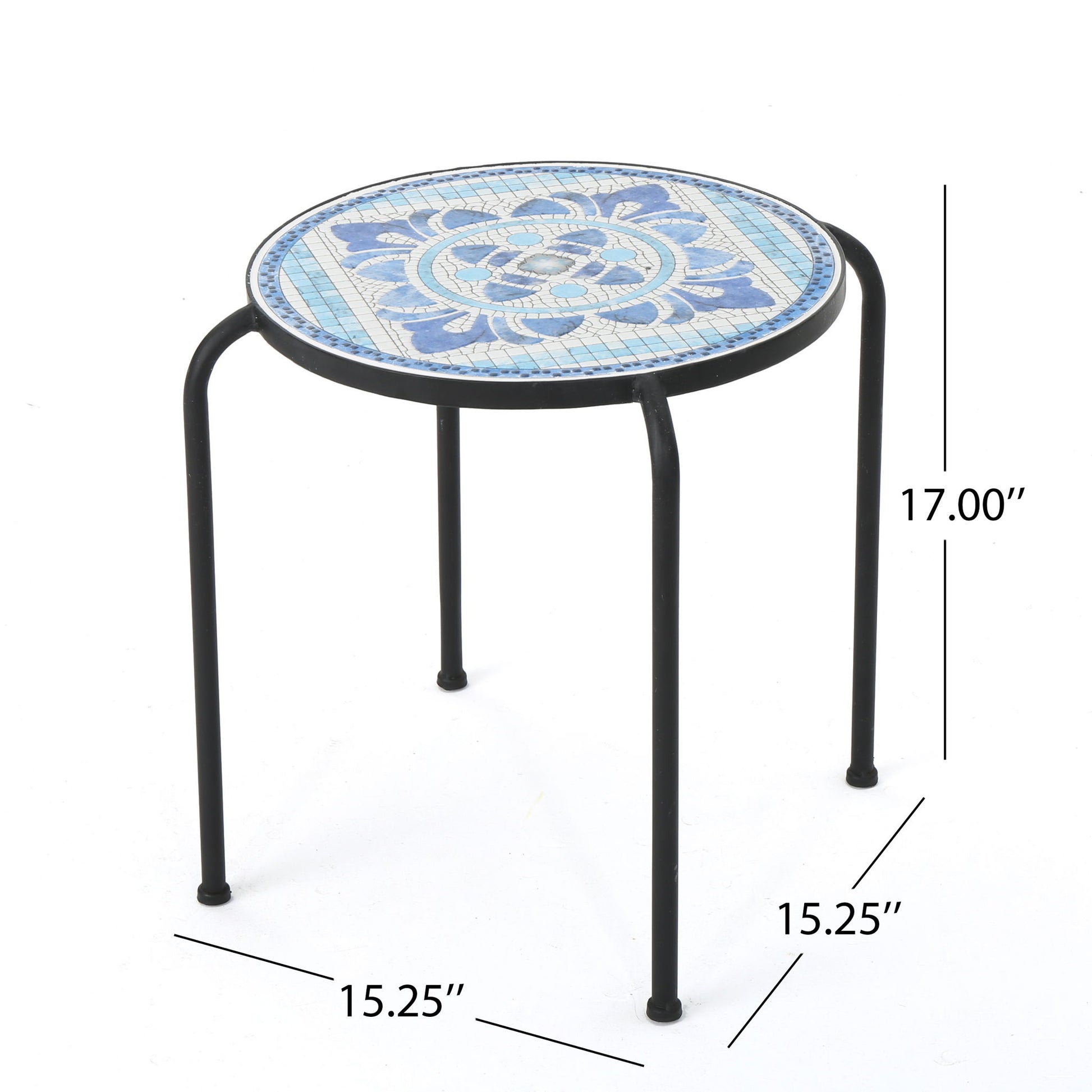 - Elegant Finish: Black iron base accentuates the blue and white tones of the tile top.